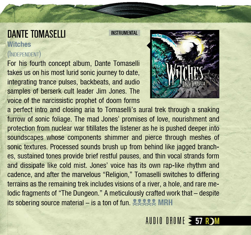“If there’s one thing that maestro of the macabre, Dante Tomaselli brings to all he creates, it’s a richness of image and a real sense of fever dream aesthetics...I honestly can’t recommend Witches enough, especially if you dig on the works of John Carpenter, Werewolves in Siberia, or Disasterpiece…it’s truly immersive horror-scape awesomeness.”