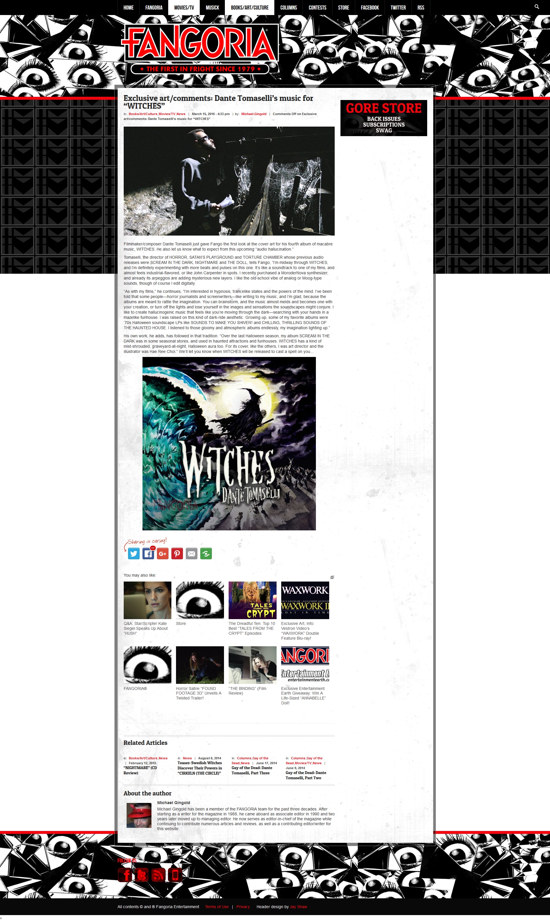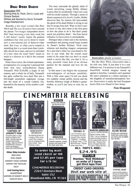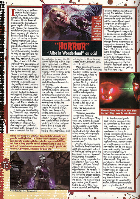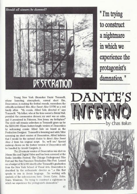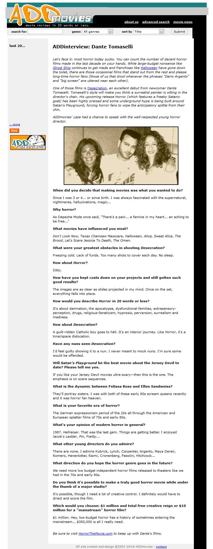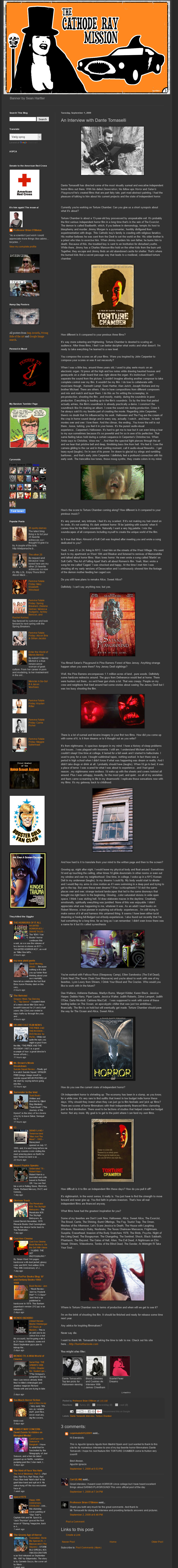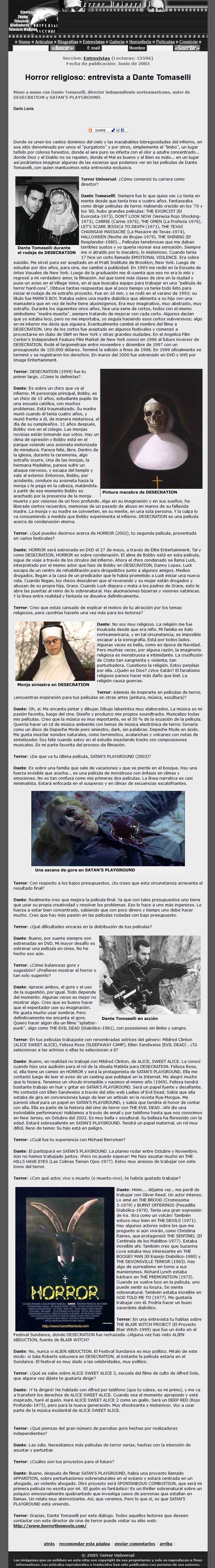 "Dante Tomaselli is one of most visually striking directors working in the horror genre these days. An independent director, working with small budgets, he has repeatedly shown that atmosphere, vision and style are often more important than costly, over-the-top effects to tell a scary story."