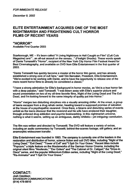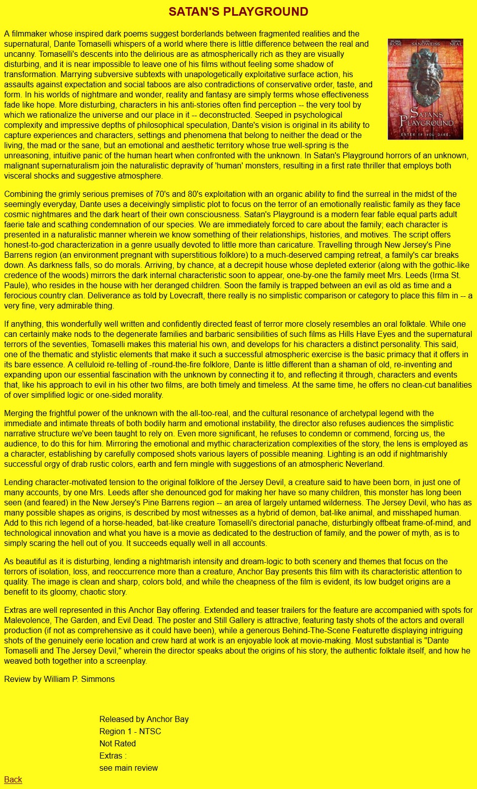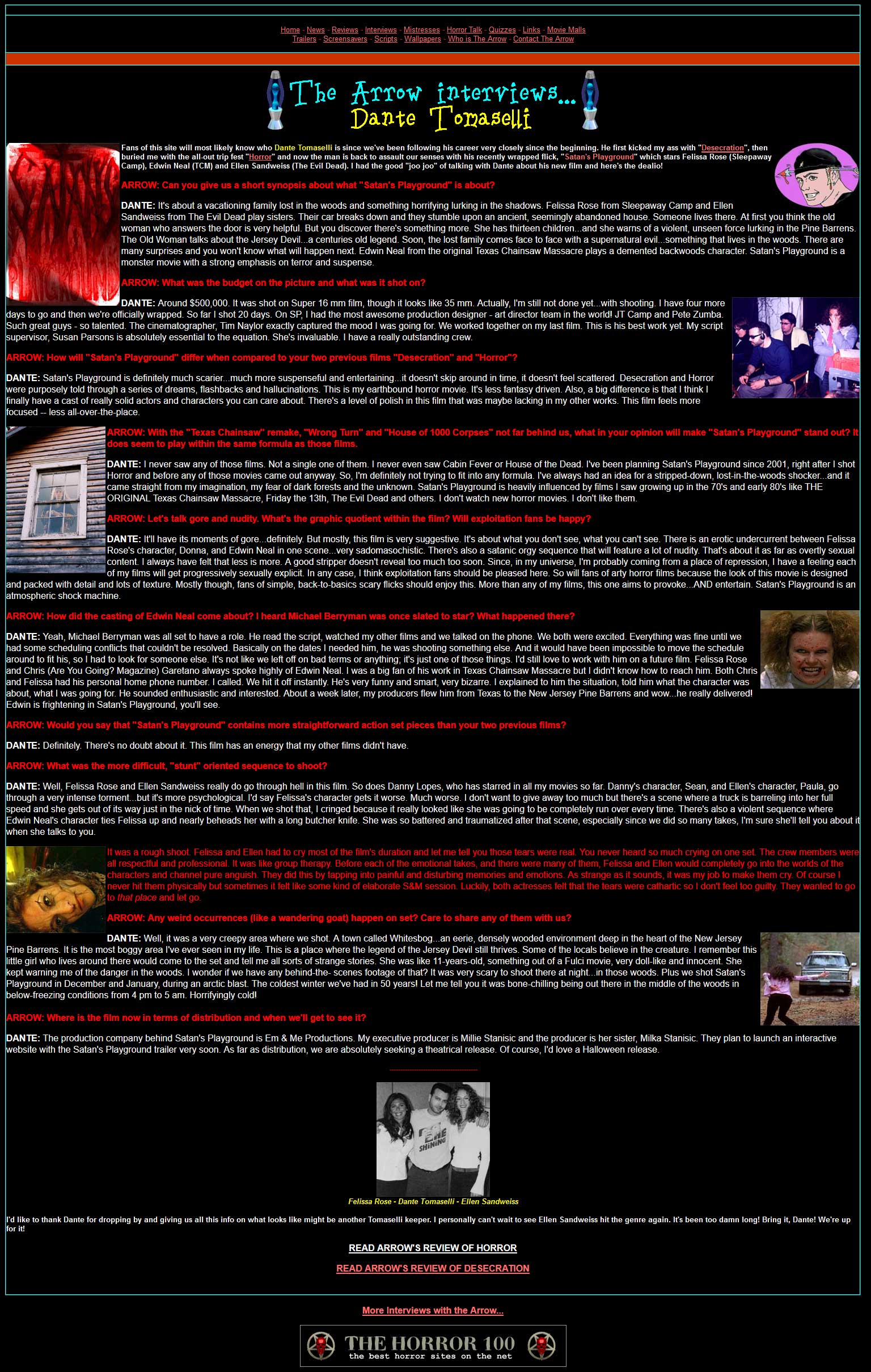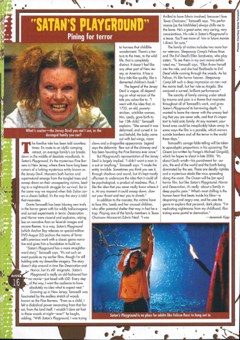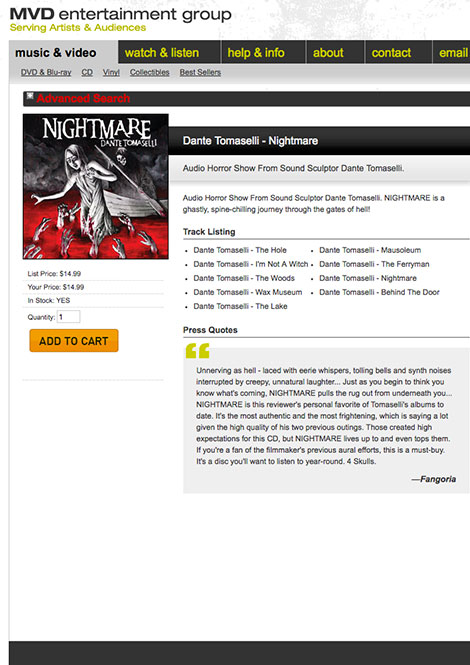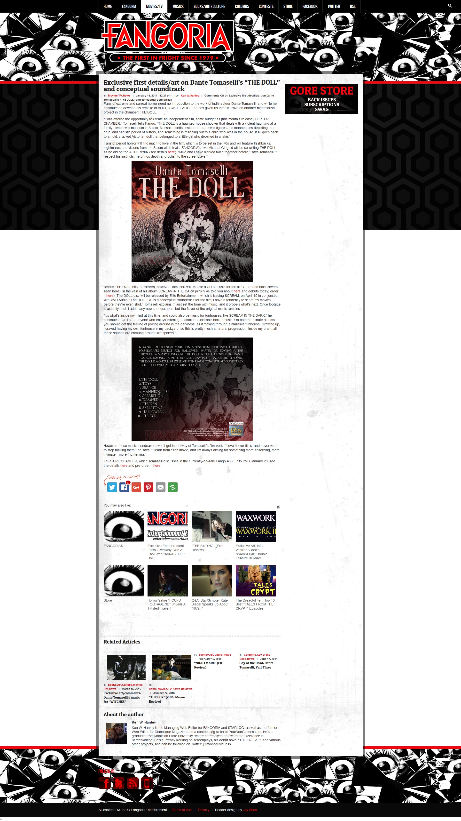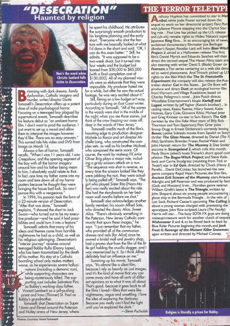 "Dante Tomaselli is one of most visually striking directors working in the horror genre these days. An independent director, working with small budgets, he has repeatedly shown that atmosphere, vision and style are often more important than costly, over-the-top effects to tell a scary story."