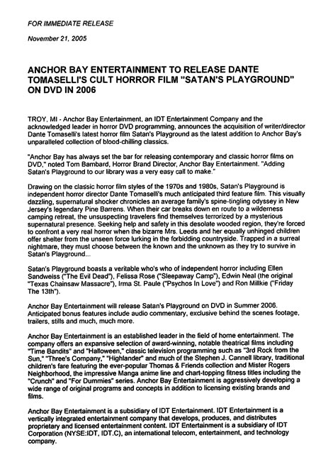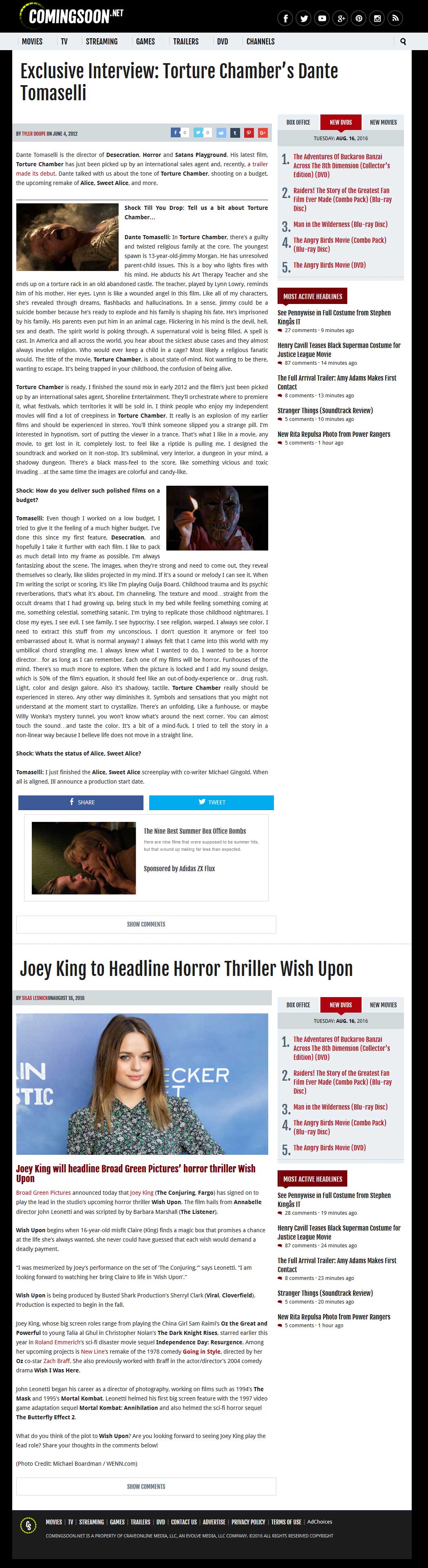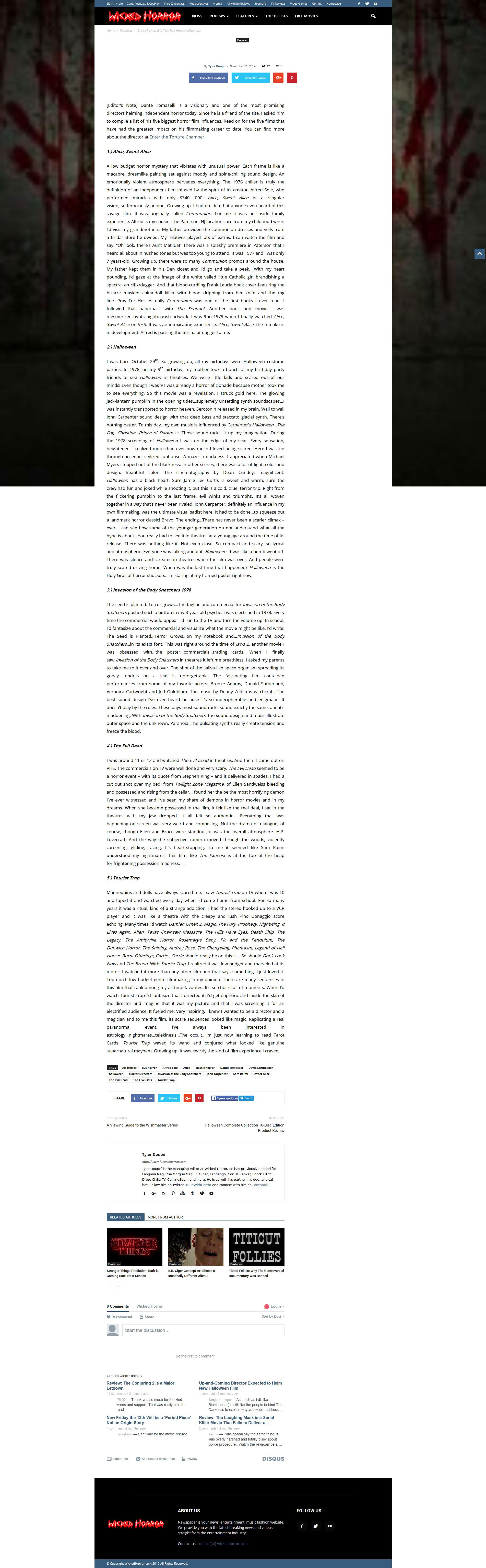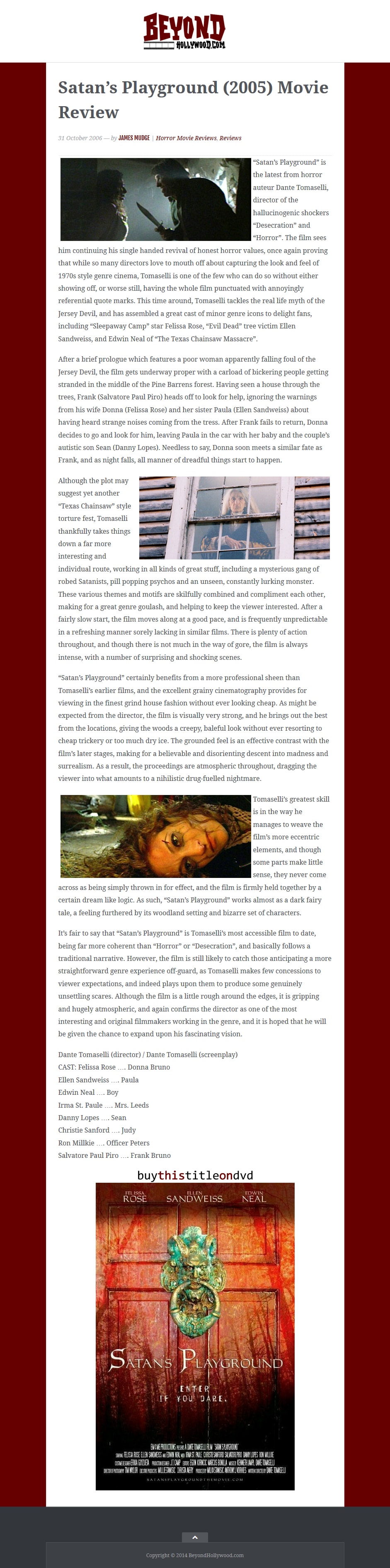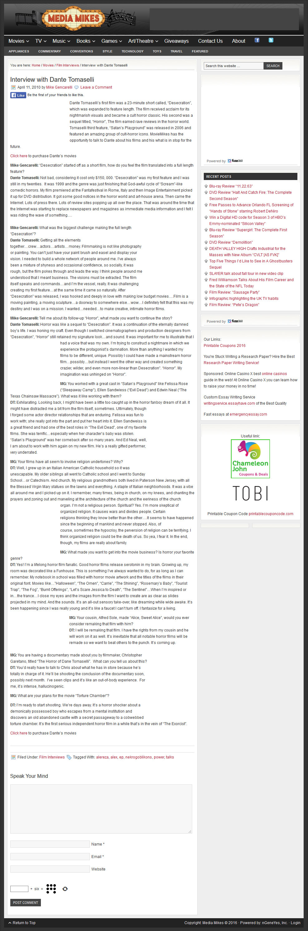 "Dante Tomaselli is one of most visually striking directors working in the horror genre these days. An independent director, working with small budgets, he has repeatedly shown that atmosphere, vision and style are often more important than costly, over-the-top effects to tell a scary story."
