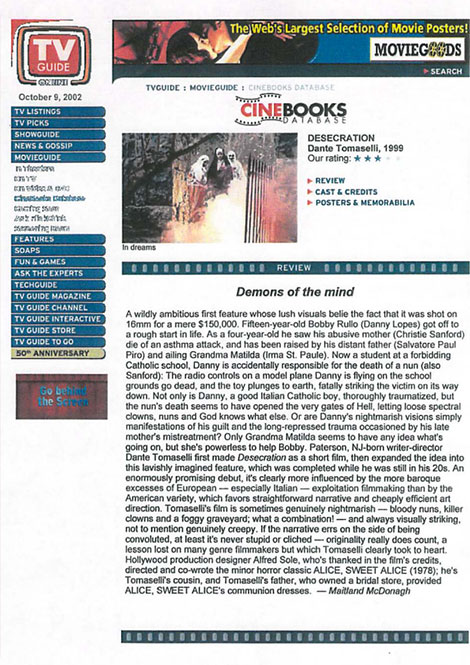 “Eerie, painterly...Desecration is a low budget masterpiece of dream logic.”