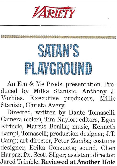 "The director achieves impressive overall results...Richly atmospheric exercise in surreal horror...complex music/ambient audio design...beautifully menacing photography...Tomaselli creates a hyper-real atmosphere of striking primal-fear images, cackling lunacy, impending doom and grotesque humor...Belying very modest means, Tomaselli has delivered a design and tech package that’s first-rate."